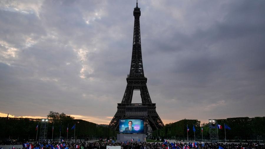 Frankreich hat Emmanuel Macron wiedergewählt. Seine Anhängerinnen und Anhänger feiern nahe dem. Auch Mélenchon sprach sich.